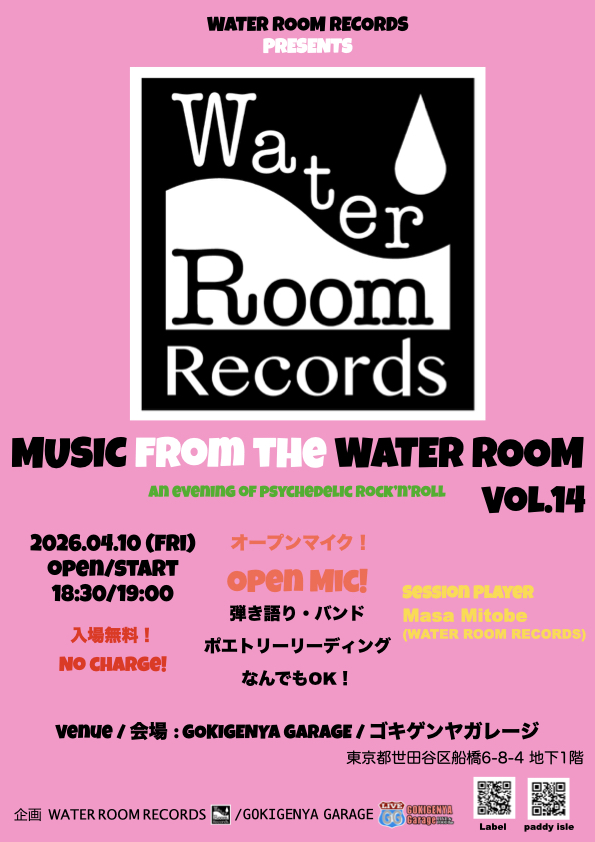 千歳船橋(経堂)のゴキゲンヤ・ガレージでWATER ROOM RECORDS主催のイベントを開催いたします!